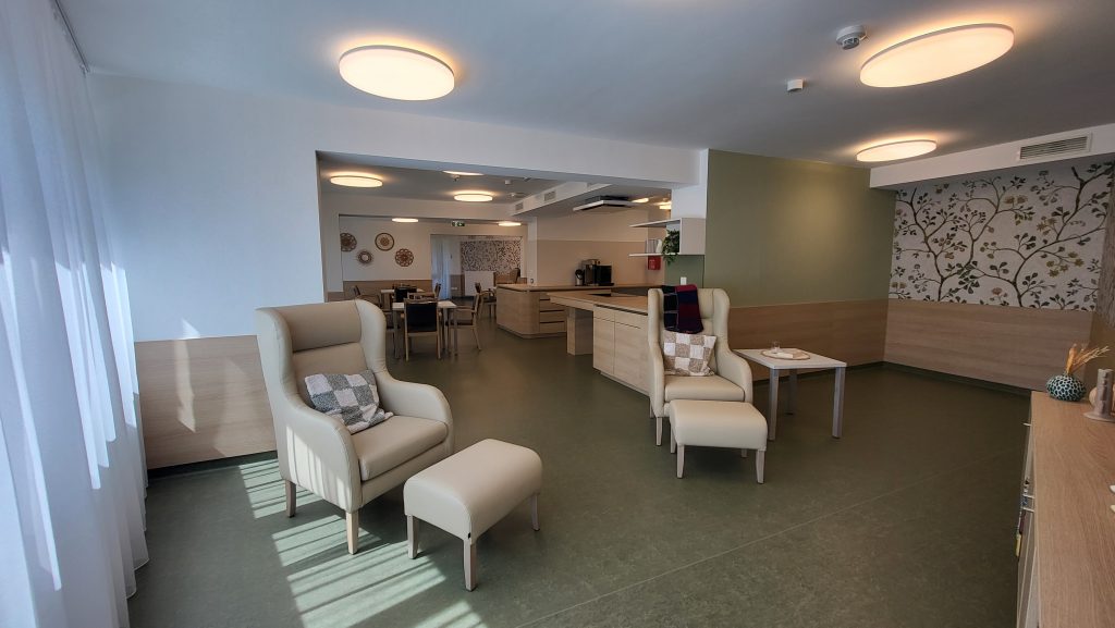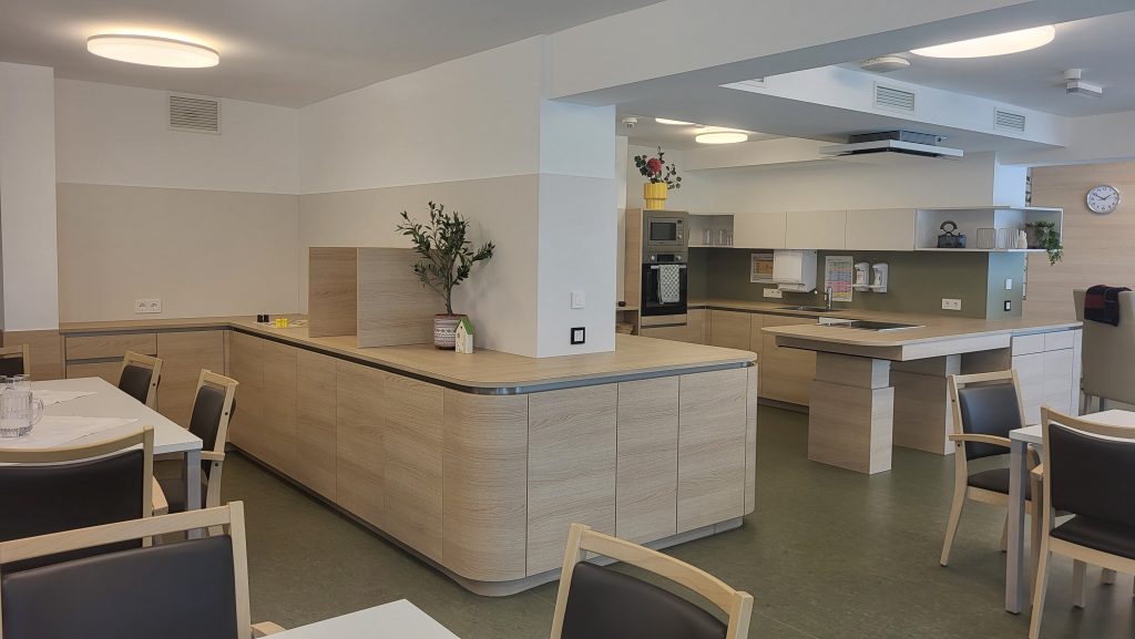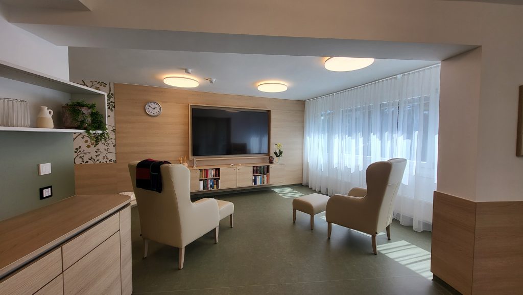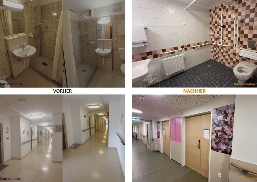 Das Projekt umfasste die Neuerrichtung zweier stationärer Bereiche für 28 Personen pro Station (gesamt 56 neue stationäre Plätze) im 1. Und 2.Obergeschoß – aufgeteilt auf je zwei Wohngruppen zu je 14 Personen.